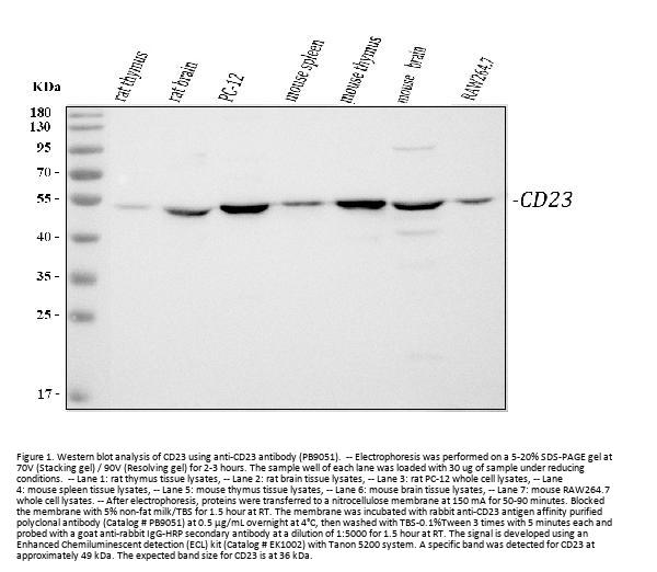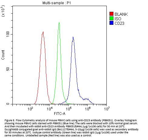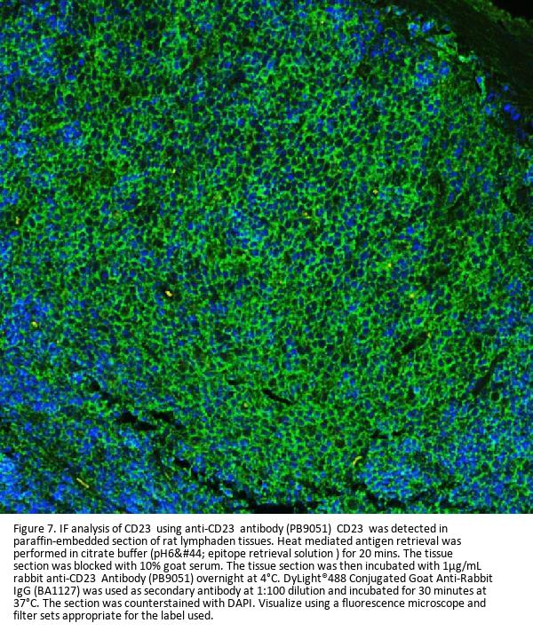 Boster Bio Anti-CD23/FCER2 Antibody Picoband® catalog # PB9051. Tested in ELISA, Flow Cytometry, IF, IHC, IHC-F, ICC, WB applications. This antibody reacts with Human, Mouse, Rat. The brand Picoband indicates this is a premium antibody that guarantees superior quality, high affinity, and strong signals with minimal background in Western blot applications. Only our best-performing antibodies are designated as Picoband, ensuring unmatched performance.