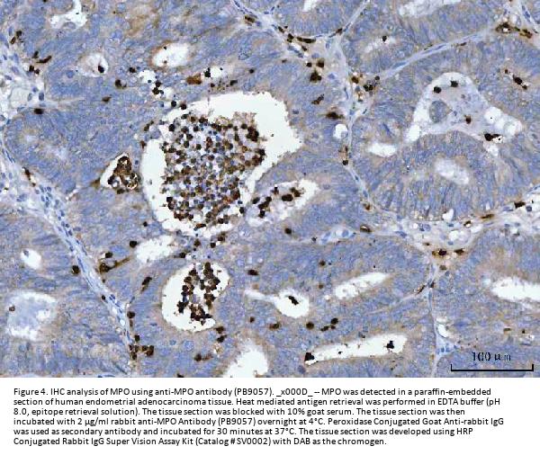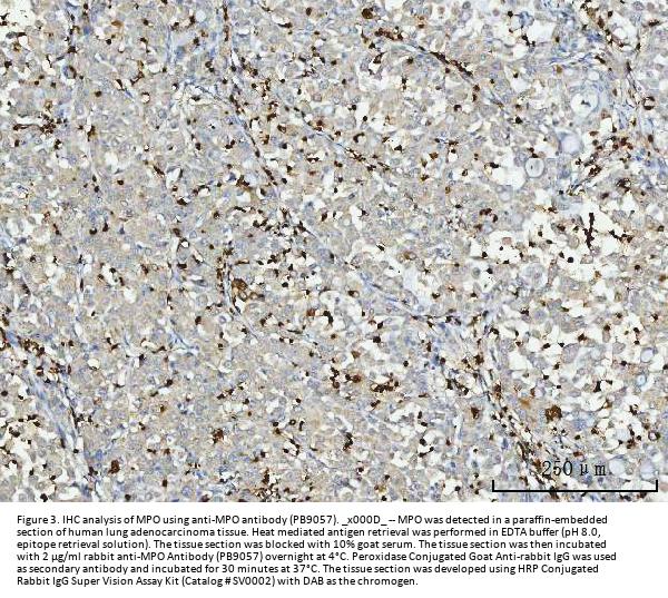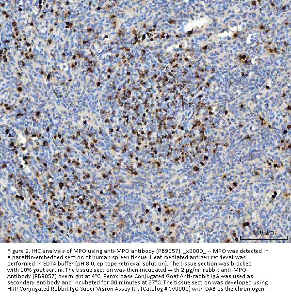 Similar products 84 kDa myeloperoxidase antibody, 89 kDa myeloperoxidase antibody, EC 1.11.1.7 antibody, EC1.11.2.2 antibody, MPO antibody, Myeloperoxidase heavy chain antibody, Myeloperoxidase light chain antibody, PERM_HUMAN antibody