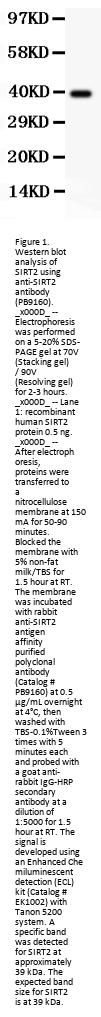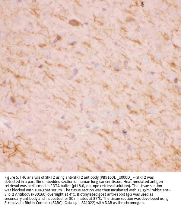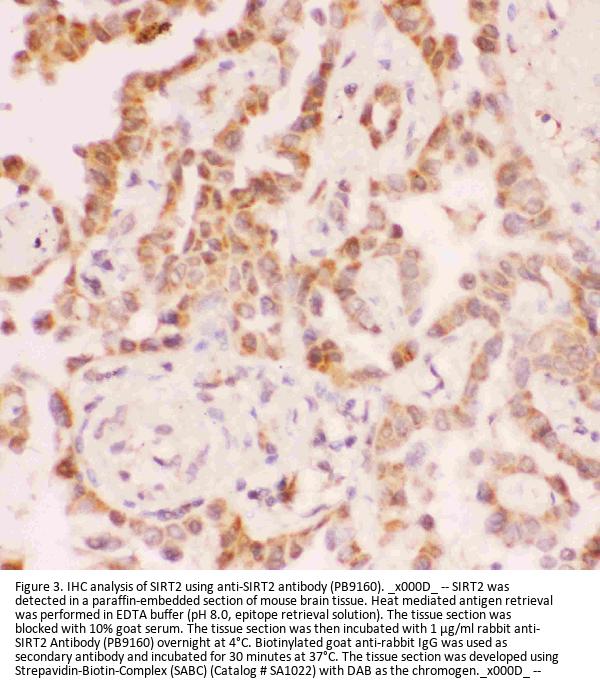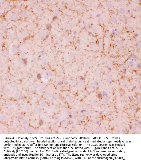 Boster Bio Anti-SIRT2 Antibody Picoband® catalog # PB9160. Tested in IHC, WB applications. This antibody reacts with Human, Mouse, Rat. The brand Picoband indicates this is a premium antibody that guarantees superior quality, high affinity, and strong signals with minimal background in Western blot applications. Only our best-performing antibodies are designated as Picoband, ensuring unmatched performance.