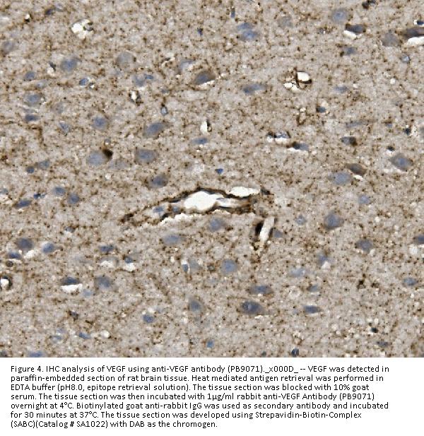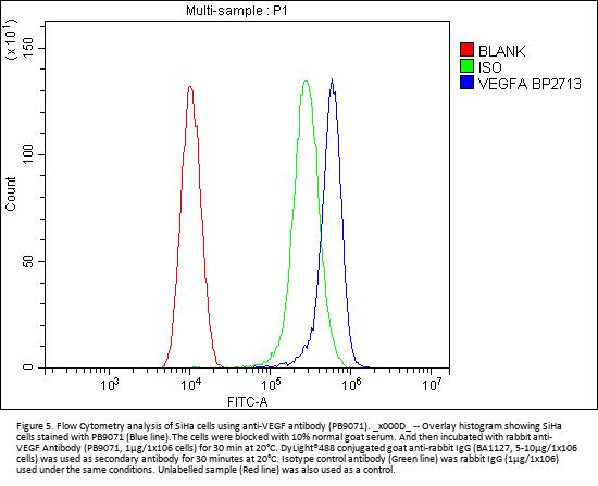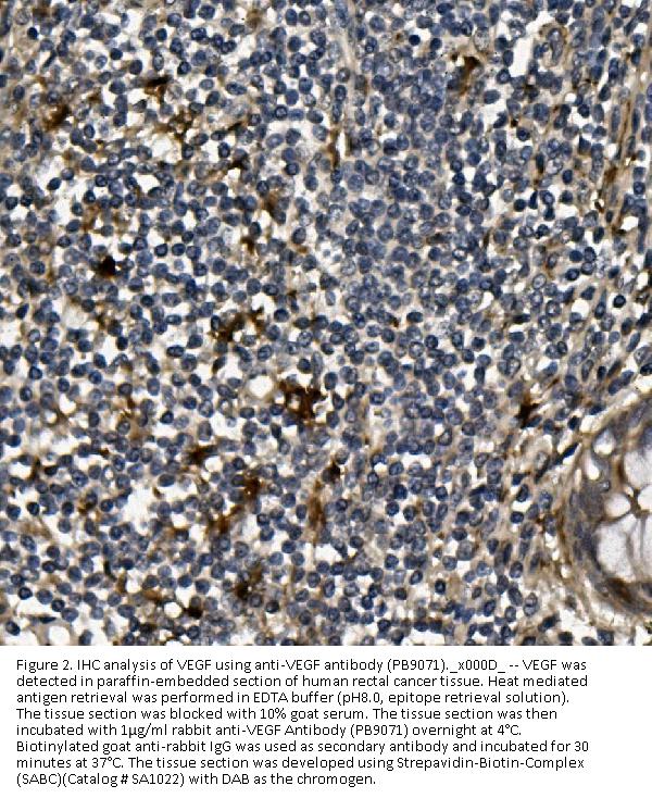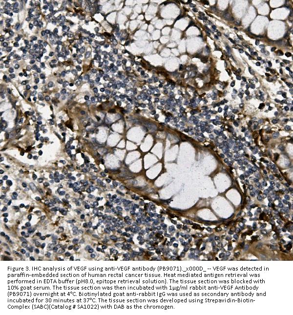 Boster Bio Anti-VEGF/VEGFA Antibody Picoband® catalog # PB9071. Tested in Flow Cytometry, IHC, WB applications. This antibody reacts with Human, Mouse, Rat. The brand Picoband indicates this is a premium antibody that guarantees superior quality, high affinity, and strong signals with minimal background in Western blot applications. Only our best-performing antibodies are designated as Picoband, ensuring unmatched performance.