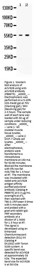 Boster Bio Anti-Activin Receptor Type IIB/ACVR2B Antibody Picoband® catalog # PB9975. Tested in WB applications. This antibody reacts with Human, Rat. The brand Picoband indicates this is a premium antibody that guarantees superior quality, high affinity, and strong signals with minimal background in Western blot applications. Only our best-performing antibodies are designated as Picoband, ensuring unmatched performance.