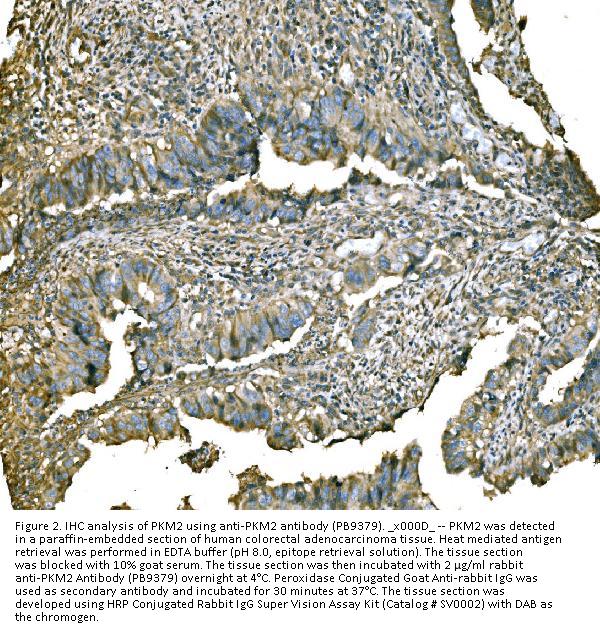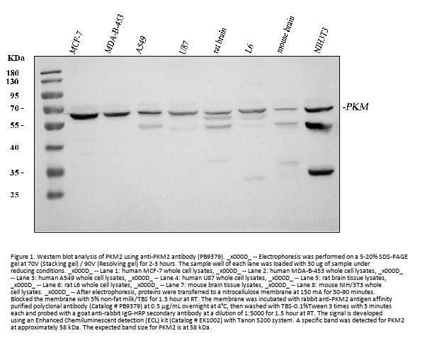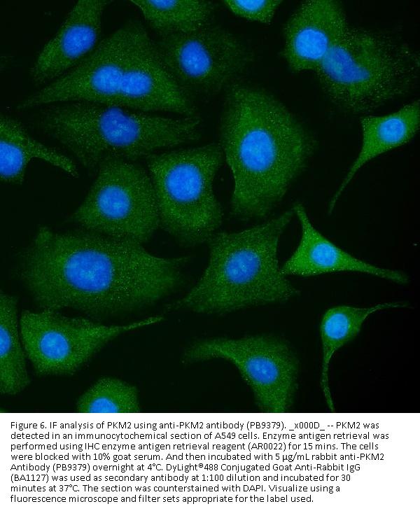 Boster Bio Anti-PKM2 Antibody Picoband® catalog # PB9379. Tested in IF, IHC, ICC, WB applications. This antibody reacts with Human, Mouse, Rat. The brand Picoband indicates this is a premium antibody that guarantees superior quality, high affinity, and strong signals with minimal background in Western blot applications. Only our best-performing antibodies are designated as Picoband, ensuring unmatched performance.