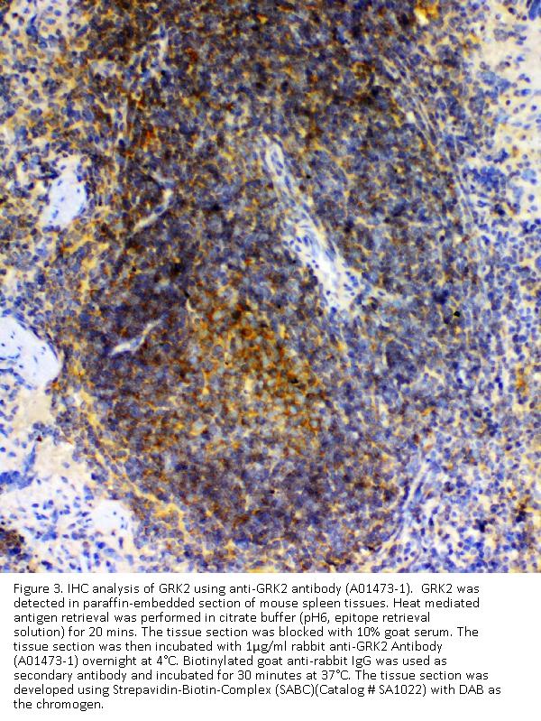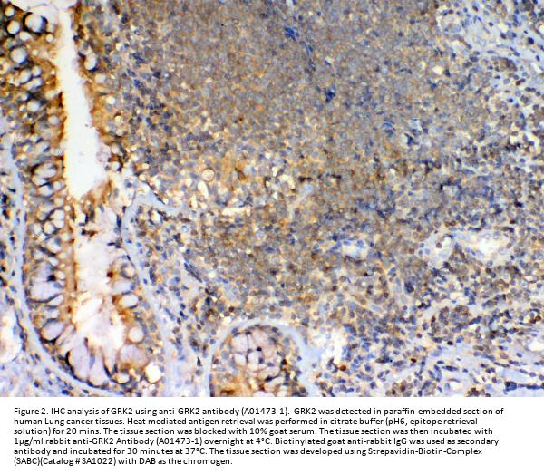 Boster Bio Anti-GRK2/GRK2 Antibody Picoband® catalog # A01473-1. Tested in Flow Cytometry, IF, IHC, ICC, WB applications. This antibody reacts with Human, Mouse, Rat. The brand Picoband indicates this is a premium antibody that guarantees superior quality, high affinity, and strong signals with minimal background in Western blot applications. Only our best-performing antibodies are designated as Picoband, ensuring unmatched performance.