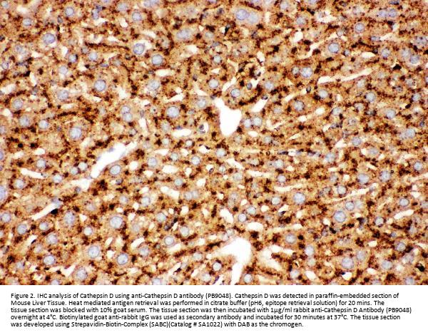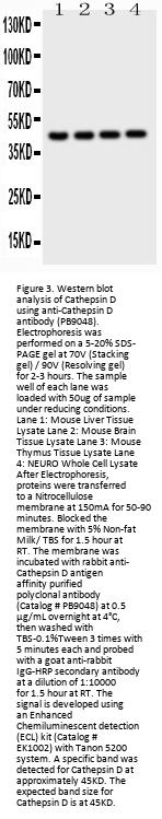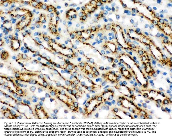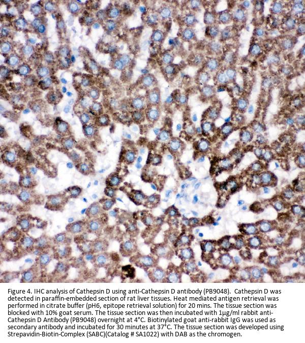 Boster Bio Anti-Cathepsin D/CTSD Antibody Picoband® catalog # PB9048. Tested in IHC, WB applications. This antibody reacts with Mouse, Rat. The brand Picoband indicates this is a premium antibody that guarantees superior quality, high affinity, and strong signals with minimal background in Western blot applications. Only our best-performing antibodies are designated as Picoband, ensuring unmatched performance.