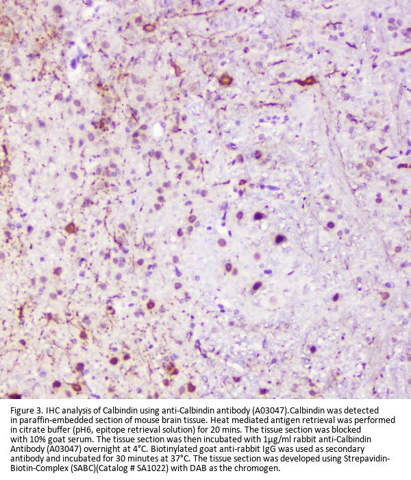 Boster Bio Anti-Calbindin/CALB1 Antibody Picoband® catalog # A03047. Tested in ELISA, Flow Cytometry, IF, IHC, WB applications. This antibody reacts with Human, Mouse, Rat. The brand Picoband indicates this is a premium antibody that guarantees superior quality, high affinity, and strong signals with minimal background in Western blot applications. Only our best-performing antibodies are designated as Picoband, ensuring unmatched performance.