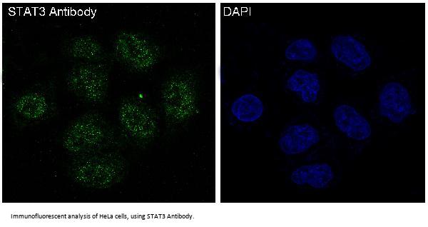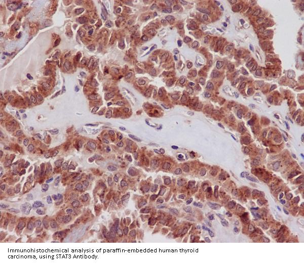 Boster Bio Anti-STAT3 Rabbit Monoclonal Antibody catalog # M00007. Tested in WB, IHC, ICC/IF, Flow Cytometry applications. This antibody reacts with Human, Mouse, Rat.