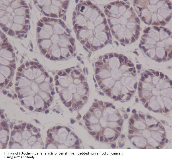 Boster Bio Anti-APC Monoclonal Antibody catalog # M00008. Tested in WB, IHC, ICC/IF, IP applications. This antibody reacts with Human, Mouse, Rat.