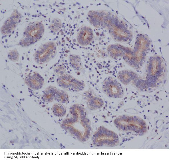Boster Bio Anti-MyD88 Monoclonal Antibody catalog # M00025. Tested in WB, IHC, ICC/IF, Flow Cytometry applications. This antibody reacts with Human.