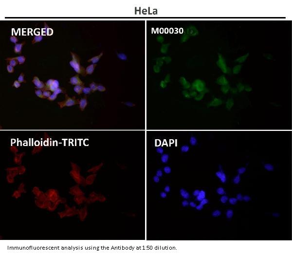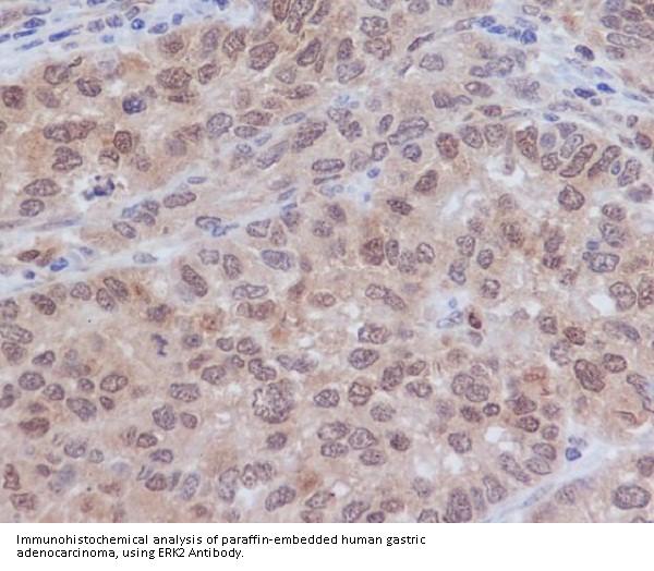 Boster Bio Anti-ERK2 Monoclonal Antibody catalog # M00030. Tested in WB, IHC, ICC/IF, IP, Flow Cytometry applications. This antibody reacts with Human, Mouse, Rat.