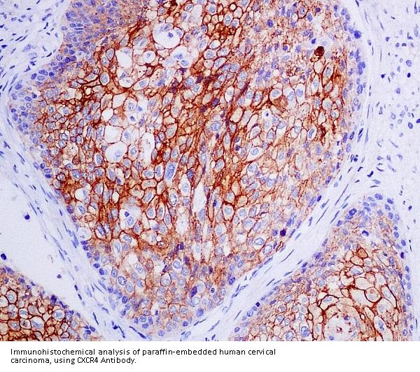 Boster Bio Anti-CXCR4 Monoclonal Antibody catalog # M00031. Tested in WB, IHC, ICC/IF applications. This antibody reacts with Human, Mouse.