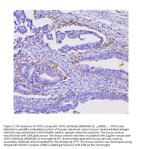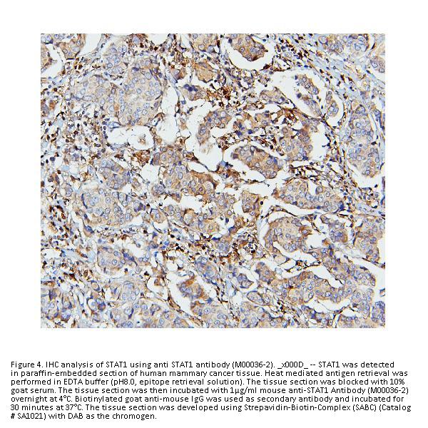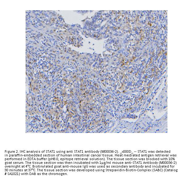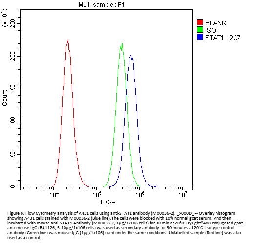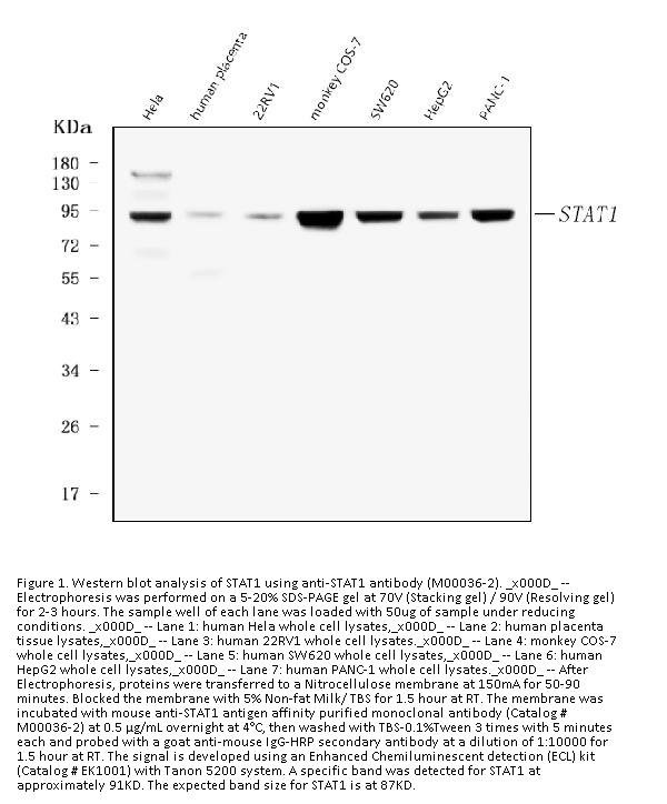 Boster Bio Anti-STAT1 Antibody Picoband® (monoclonal, 12C7) catalog # M00036-2. Tested in Flow Cytometry, IF, IHC, ICC, WB applications. This antibody reacts with Human, Monkey. The brand Picoband indicates this is a premium antibody that guarantees superior quality, high affinity, and strong signals with minimal background in Western blot applications. Only our best-performing antibodies are designated as Picoband, ensuring unmatched performance.