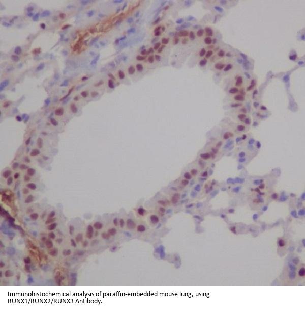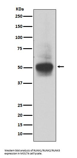 Boster Bio Anti-RUNX1/RUNX2/RUNX3 Rabbit Monoclonal Antibody catalog # M00086. Tested in WB, IHC, ICC/IF, IP, Flow Cytometry applications. This antibody reacts with Human, Mouse, Rat.