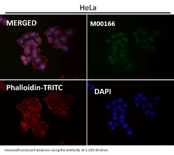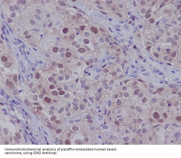 Boster Bio Anti-CDK2 Rabbit Monoclonal Antibody catalog # M00166. Tested in WB, IHC, ICC/IF, IP applications. This antibody reacts with Human, Mouse, Rat.