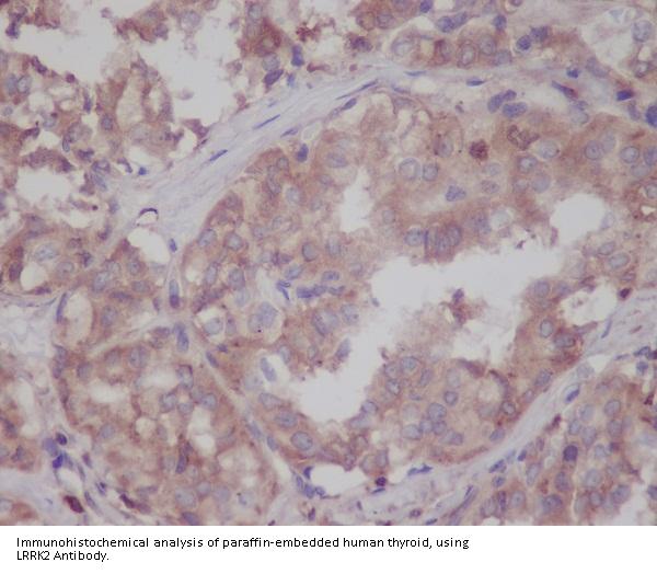 Boster Bio Anti-LRRK2 Rabbit Monoclonal Antibody catalog # M00221-2. Tested in WB, IHC, ICC/IF, IP applications. This antibody reacts with Human, Mouse, Rat.