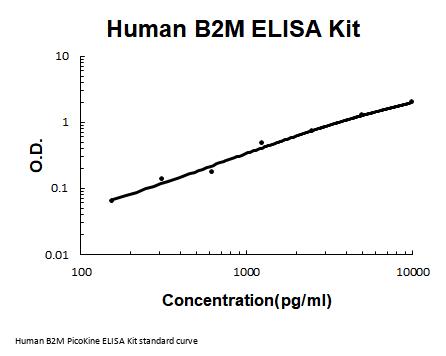 Human B2M / beta 2 Microglobulin ELISA Kit PicoKine® (96 Tests). Quantitate Human B2M in cell culture supernatants, serum, plasma (heparin, EDTA) , saliva, urine and human milk. Sensitivity: 10pg/ml. The brand Picokine indicates this is a premium quality ELISA kit. Each Picokine kit delivers precise quantification, high sensitivity, and excellent reproducibility. Only our most reliable and effective kits qualify as Picokine, guaranteeing top-tier results for your assays.
