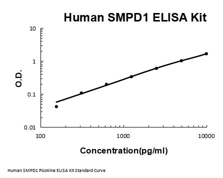 Human SMPD1 ELISA Kit PicoKine® (96 Tests). Quantitate Human SMPD1 in cell culture supernatants, serum and plasma (heparin). Sensitivity: 10pg/ml. The brand Picokine indicates this is a premium quality ELISA kit. Each Picokine kit delivers precise quantification, high sensitivity, and excellent reproducibility. Only our most reliable and effective kits qualify as Picokine, guaranteeing top-tier results for your assays.