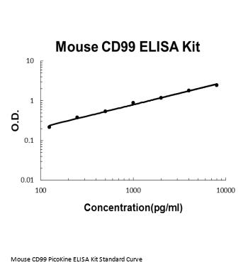 Mouse CD99 ELISA Kit PicoKine® (96 Tests). Quantitate Mouse Cd99 in cell culture supernatants, serum and plasma (heparin, EDTA, citrate). Sensitivity: 50pg/ml. The brand Picokine indicates this is a premium quality ELISA kit. Each Picokine kit delivers precise quantification, high sensitivity, and excellent reproducibility. Only our most reliable and effective kits qualify as Picokine, guaranteeing top-tier results for your assays.