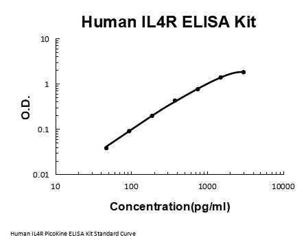 Human IL4R ELISA Kit PicoKine® (96 Tests). Quantitate Human IL4R in cell culture supernatants, serum and plasma (heparin, EDTA, citrate). Sensitivity: 10pg/ml. The brand Picokine indicates this is a premium quality ELISA kit. Each Picokine kit delivers precise quantification, high sensitivity, and excellent reproducibility. Only our most reliable and effective kits qualify as Picokine, guaranteeing top-tier results for your assays.