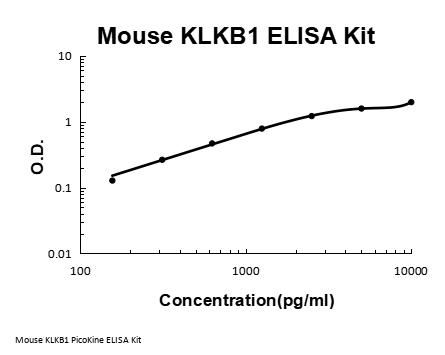 Mouse KLKB1 ELISA Kit PicoKine® (96 Tests). Quantitate Mouse Klkb1 in cell culture supernatants, serum and plasma (heparin, EDTA, citrate). Sensitivity: 50pg/ml. The brand Picokine indicates this is a premium quality ELISA kit. Each Picokine kit delivers precise quantification, high sensitivity, and excellent reproducibility. Only our most reliable and effective kits qualify as Picokine, guaranteeing top-tier results for your assays.