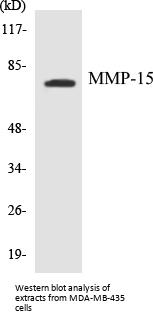 Alias Matrix metalloproteinase-15,MMP-15,Membrane-type matrix metalloproteinase 2,MT-MMP 2,MTMMP2,Membrane-type-2 matrix metalloproteinase,MT2-MMP,MT2MMP,SMCP-2,MMP15