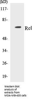 Proto-oncogene that may play a role in differentiation and lymphopoiesis. NF-kappa-B is a pleiotropic transcription factor which is present in almost all cell types and is involved in many biological processed such as inflammation, immunity, differentiation, cell growth, tumorigenesis and apoptosis. NF- kappa-B is a homo- or heterodimeric complex formed by the Rel-like domain-containing proteins RELA/p65, RELB, NFKB1/p105, NFKB1/p50, REL and NFKB2/p52. The dimers bind at kappa-B sites in the DNA of their target genes and the individual dimers have distinct preferences for different kappa-B sites that they can bind with distinguishable affinity and specificity. Different dimer combinations act as transcriptional activators or repressors, respectively. NF-kappa-B is controlled by various mechanisms of post-translational modification and subcellular compartmentalization as well as by interactions with other cofactors or corepressors. NF-kappa-B complexes are held in the cytoplasm in an inactive state complexed with members of the NF- kappa-B inhibitor (I-kappa-B) family. In a conventional activation pathway, I-kappa-B is phosphorylated by I-kappa-B kinases (IKKs) in response to different activators, subsequently degraded thus liberating the active NF-kappa-B complex which translocates to the nucleus. The NF-kappa-B heterodimer RELA/p65-c-Rel is a transcriptional activator.