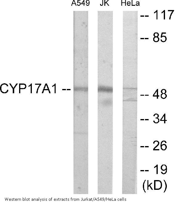 The Cytochrome P450 17A1 Cell-Based ELISA Kit is a convenient, lysate-free, high throughput and sensitive assay kit that can monitor Cytochrome P450 17A1 protein expression profile in cells. The kit can be used for measuring the relative amounts of Cytochrome P450 17A1 in cultured cells as well as screening for the effects that various treatments, inhibitors (ie. siRNA or chemicals), or activators have on Cytochrome P450 17A1.