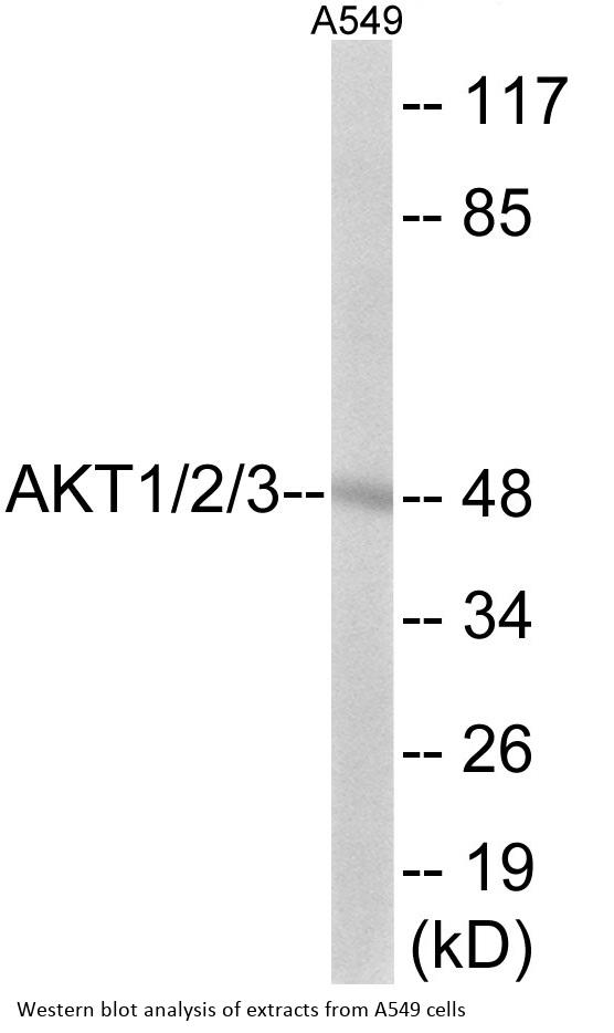 AKT1 is one of 3 closely related serine/threonine- protein kinases (AKT1, AKT2 and AKT3) called the AKT kinase, and which regulate many processes including metabolism, proliferation, cell survival, growth and angiogenesis. This is mediated through serine and/or threonine phosphorylation of a range of downstream substrates. Over 100 substrate candidates have been reported so far, but for most of them, no isoform specificity has been reported. AKT is responsible of the regulation of glucose uptake by mediating insulin-induced translocation of the SLC2A4/GLUT4 glucose transporter to the cell surface. Phosphorylation of PTPN1 at 'Ser-50' negatively modulates its phosphatase activity preventing dephosphorylation of the insulin receptor and the attenuation of insulin signaling. Phosphorylation of TBC1D4 triggers the binding of this effector to inhibitory 14-3-3 proteins, which is required for insulin-stimulated glucose transport. AKT regulates also the storage of glucose in the form of glycogen by phosphorylating GSK3A at 'Ser-21' and GSK3B at 'Ser-9', resulting in inhibition of its kinase activity. Phosphorylation of GSK3 isoforms by AKT is also thought to be one mechanism by which cell proliferation is driven. AKT regulates also cell survival via the phosphorylation of MAP3K5 (apoptosis signal-related kinase). Phosphorylation of 'Ser-83' decreases MAP3K5 kinase activity stimulated by oxidative stress and thereby prevents apoptosis. AKT mediates insulin-stimulated protein synthesis by phosphorylating TSC2 at 'Ser-939' and 'Thr-1462', thereby activating mTORC1 signaling and leading to both phosphorylation of 4E-BP1 and in activation of RPS6KB1. AKT is involved in the phosphorylation of members of the FOXO factors (Forkhead family of transcription factors), leading to binding of 14-3-3 proteins and cytoplasmic localization. In particular, FOXO1 is phosphorylated at 'Thr-24', 'Ser-256' and 'Ser-319'. FOXO3 and FOXO4 are phosphorylated on equivalent sites. AKT has an important role in the regulation of NF-kappa-B-dependent gene transcription and positively regulates the activity of CREB1 (cyclic AMP (cAMP)- response element binding protein). The phosphorylation of CREB1 induces the binding of accessory proteins that are necessary for the transcription of pro-survival genes such as BCL2 and MCL1. AKT phosphorylates 'Ser-454' on ATP citrate lyase (ACLY), thereby potentially regulating ACLY activity and fatty acid synthesis. Activates the 3B isoform of cyclic nucleotide phosphodiesterase (PDE3B) via phosphorylation of 'Ser-273', resulting in reduced cyclic AMP levels and inhibition of lipolysis. Phosphorylates PIKFYVE on 'Ser-318', which results in increased PI (3)P-5 activity. The Rho GTPase-activating protein DLC1 is another substrate and its phosphorylation is implicated in the regulation cell proliferation and cell growth. AKT plays a role as key modulator of the AKT-mTOR signaling pathway controlling the tempo of the process of newborn neurons integration during adult neurogenesis, including correct neuron positioning, dendritic development and synapse formation. Signals downstream of phosphatidylinositol 3-kinase (PI (3)K) to mediate the effects of various growth factors such as platelet-derived growth factor (PDGF), epidermal growth factor (EGF), insulin and insulin-like growth factor I (IGF-I). AKT mediates the antiapoptotic effects of IGF-I. Essential for the SPATA13-mediated regulation of cell migration and adhesion assembly and disassembly. May be involved in the regulation of the placental development. Phosphorylates STK4/MST1 at 'Thr-120' and 'Thr-387' leading to inhibition of its: kinase activity, nuclear translocation, autophosphorylation and ability to phosphorylate FOXO3. Phosphorylates STK3/MST2 at 'Thr- 117' and 'Thr-384' leading to inhibition of its: cleavage, kinase activity, autophosphorylation at Thr-180, binding to RASSF1 and nuclear translocation. Phosphorylates SRPK2 and enhances its kinase activity towards SRSF2 and ACIN1 and promotes its nuclear translocation. Phosphorylates RAF1 at 'Ser-259' and negatively regulates its activity. Phosphorylation of BAD stimulates its pro- apoptotic activity. Phosphorylates KAT6A at 'Thr-369' and this phosphorylation inhibits the interaction of KAT6A with PML and negatively regulates its acetylation activity towards p53/TP53.