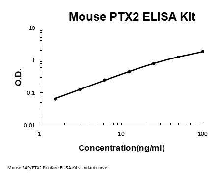 Mouse SAP/PTX2 PicoKine® Quick ELISA Kit (120 minutes, 96 Tests). Quantitate Mouse Apcs in cell culture supernatants, cell lysates, serum and plasma (heparin, EDTA). Sensitivity: 50pg/ml. The brand Picokine indicates this is a premium quality ELISA kit. Each Picokine kit delivers precise quantification, high sensitivity, and excellent reproducibility. Only our most reliable and effective kits qualify as Picokine, guaranteeing top-tier results for your assays.