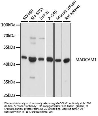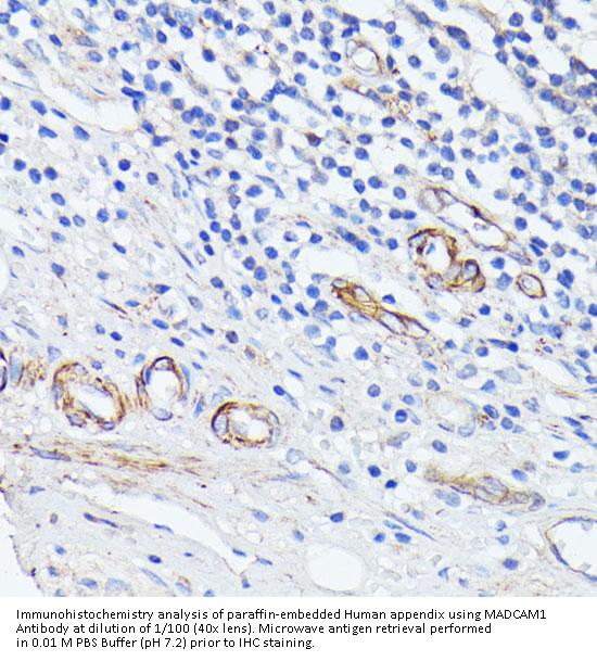 MADCAM1 Antibody is a Rabbit Polyclonal Antibody against MADCAM1.