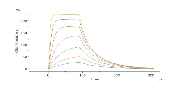 This protein carries a polyhistidine tag at the C-terminus. The protein has a calculated MW of 17.9 kDa. The protein migrates as 27-40 kDa when calibrated against Star Ribbon Pre-stained Protein Marker under reducing (R) condition (SDS-PAGE) due to glycosylation.