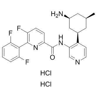 Smiles O=C(C1=NC(C2=C(F)C=CC=C2F)=C(F)C=C1)NC3=C([C@H]4C[C@@H](N)C[C@@H](C)C4)C=CN=C3.Cl.Cl