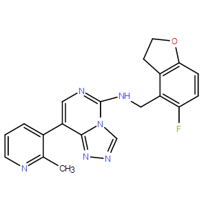 Smiles FC1C([H])=C([H])C2=C(C=1C([H])([H])N([H])C1=NC([H])=C(C3C([H])=C([H])C([H])=NC=3C([H])([H])[H])C3=NN=C([H])N13)C([H])([H])C([H])([H])O2