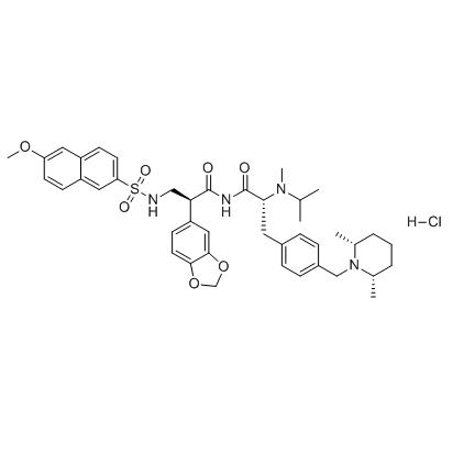 Smiles O=C(NC([C@@H](C1=CC=C(OCO2)C2=C1)CNS(=O)(C3=CC=C4C=C(OC)C=CC4=C3)=O)=O)[C@@H](CC5=CC=C(CN6[C@H](C)CCC[C@@H]6C)C=C5)N(C)C(C)C.[H]Cl