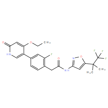 Smiles CCOC1=CC(=O)NC=C1C2=CC(=C(C=C2)CC(=O)NC3=NOC(=C3)C(C)(C)C(F)(F)F)F