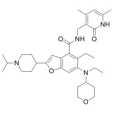Smiles O1C2=CC(N(CC)C3CCOCC3)=C(CC)C(C(NCC3=C(C)C=C(C)NC3=O)=O)=C2C=C1C1CCN(C(C)C)CC1