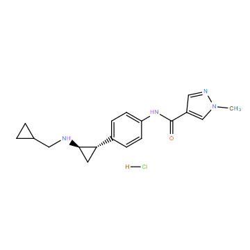 Smiles N(C)1C=C(C(NC2=CC=C([C@H]3C[C@@H]3NCC3CC3)C=C2)=O)C=N1.[H]Cl