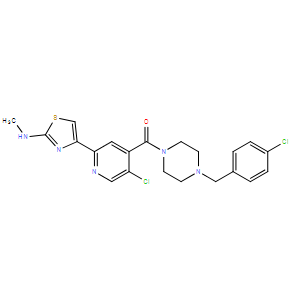 Smiles O=C(C1=CC(C2=CSC(NC)=N2)=NC=C1Cl)N3CCN(CC4=CC=C(Cl)C=C4)CC3