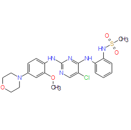 Smiles ClC1=C([H])N=C(N=C1N([H])C1=C([H])C([H])=C([H])C([H])=C1N([H])S(C([H])([H])[H])(=O)=O)N([H])C1C([H])=C([H])C(=C([H])C=1OC([H])([H])[H])N1C([H])([H])C([H])([H])OC([H])([H])C1([H])[H]