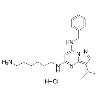 Smiles CC(C1=C(N=C(C=C2NCC3=CC=CC=C3)NCCCCCCN)N2N=C1)C.[H]Cl
