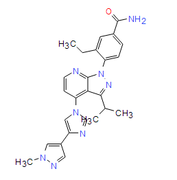 Smiles O=C(C1C=CC(=C(C=1)CC)N1C2C(=C(C=CN=2)N2C=NC(C3C=NN(C)C=3)=C2)C(C(C)C)=N1)N