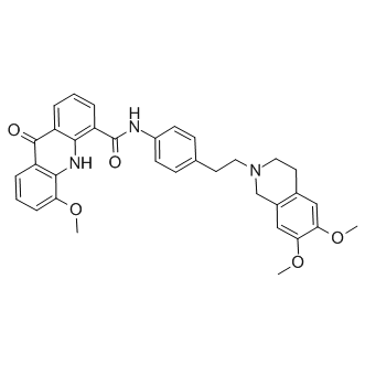 Elacridar is an orally selectly potent P-glycoprotein (P-gp/ABCG1) inhibitor.