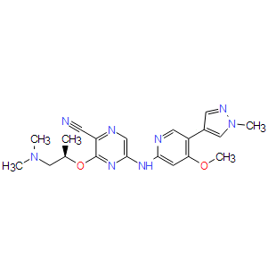 Smiles C1N=C(NC2N=C(O[C@@H](CN(C)C)C)C(C#N)=NC=2)C=C(OC)C=1C1=CN(C)N=C1
