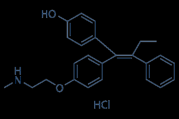 Smiles OC1=CC=C(/C(C2=CC=C(OCCNC)C=C2)=C(C3=CC=CC=C3)\CC)C=C1.[H]Cl