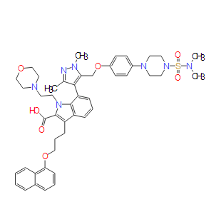 7-(5-((4-(4-(N, N-dimethylsulfamoyl)piperazin-1-yl)phenoxy)methyl)-1, 3-dimethyl-1H-pyrazol-4-yl)-1-(2-morpholinoethyl)-3-(3-(naphthalen-1-yloxy)propyl)-1H-indole-2-carboxylic acid