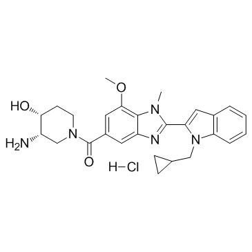 Smiles CN1C2=C(C=C(C=C2OC)C(=O)N3CC[C@H]([C@H](C3)N)O)N=C1C4=CC5=CC=CC=C5N4CC6CC6.Cl