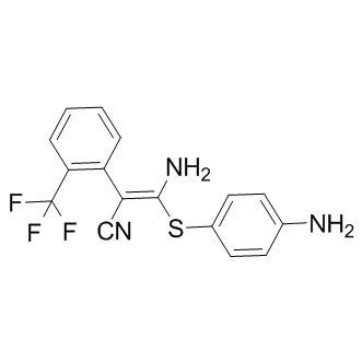 SL-327 is a cell-permeable vinylogous cyanamide that acts as a selective inhibitor of MEK-1 and MEK-2 (IC50 = 0.18 and 0.22 μM respectively).
