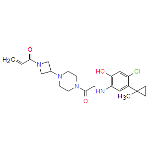 Smiles ClC1=C([H])C(=C(C([H])=C1C1(C([H])([H])[H])C([H])([H])C1([H])[H])N([H])C([H])([H])C(N1C([H])([H])C([H])([H])N(C([H])([H])C1([H])[H])C1([H])C([H])([H])N(C(C([H])=C([H])[H])=O)C1([H])[H])=O)O[H]