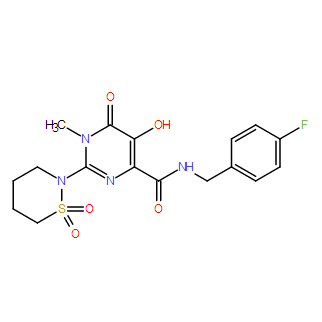 Smiles S1(C([H])([H])C([H])([H])C([H])([H])C([H])([H])N1C1=NC(C(N([H])C([H])([H])C2C([H])=C([H])C(=C([H])C=2[H])F)=O)=C(C(N1C([H])([H])[H])=O)O[H])(=O)=O