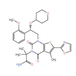 Smiles C([C@H](OC1CCOCC1)CN1C(=O)N(C(C)(C)C(=O)N)C(=O)C2C(C)=C(C3=NC=CO3)SC1=2)1=C(OC)C=CC=C1