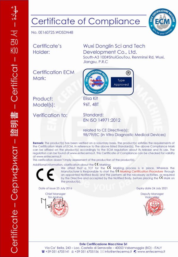 1.For unopened kit: All the reagents should be kept according to the labels on vials. The TMB Substrate, Wash Buffer (30 × concentrate) and the Stop Solution should be stored at 4oC upon receipt while the others should be at -20oC.